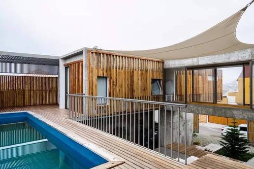 阿根廷建筑師盧西亞諾·克魯克(Luciano Kruk)在布宜諾斯艾利斯郊區建造了一座混凝土住宅,其前懸有一塊懸挑板和一個(gè)反射池。