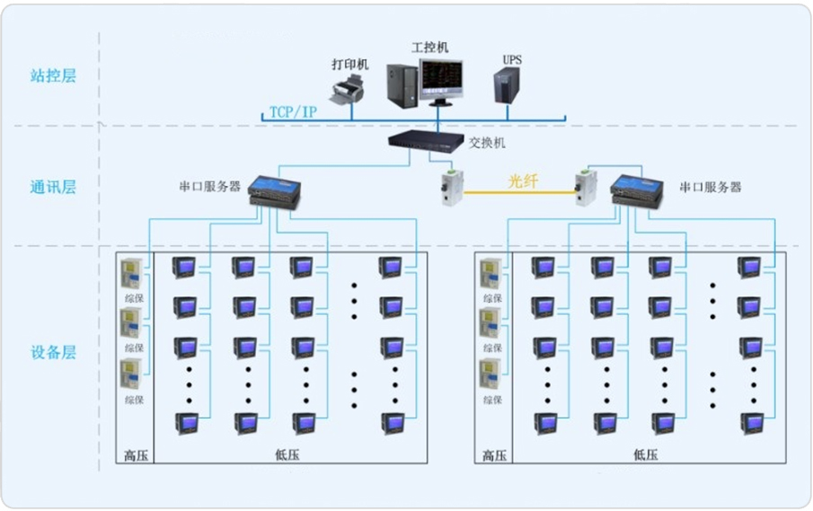 本系統主要監測新建3.6萬(wàn)KL/年精品啤酒項目聯(lián)合車(chē)間,該車(chē)間共有2組變壓器。3臺AM5微機保護裝置,5只ACR330ELH、41只ACR120EL、4只PZ72L-AI3多功能電力儀表接入電能管理系統。通訊總線(xiàn)直接接入變電所內串口服務(wù)器,從而儀表與監控主機的數據連通。安科瑞電氣股份有限公司為其配置一套Acrel-3000電能管理系統,實(shí)時(shí)監測變電所內各個(gè)回路的電流、電壓、功率、開(kāi)關(guān)狀態(tài)等電參量,由此達到變電所少人值守或無(wú)人值守的智能化管理。