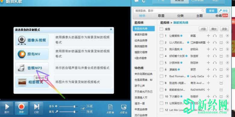 5.彈出的錄制頁(yè)面之中,選擇所需要錄制的格式,多數用戶(hù)會(huì )選擇MP3格式。