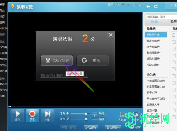 7.如果對于所唱歌曲滿(mǎn)意,則可以將其保存,如果對其不滿(mǎn)意可選擇重新錄制。