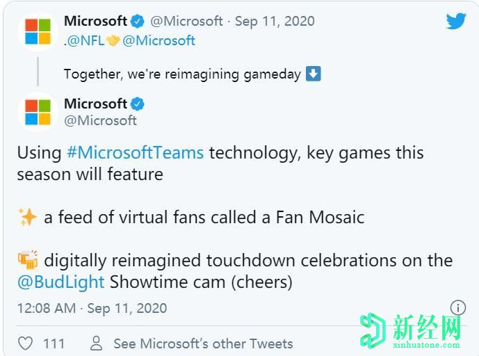 就像NBA一樣,當今晚賽季開(kāi)始時(shí),NFL將使用Microsoft Teams將球迷帶入體育場(chǎng)(盡管實(shí)際上是)。虛擬觀(guān)眾的馬賽克將顯示在體育場(chǎng)內的LED屏幕上以及關(guān)鍵比賽中的廣播中。