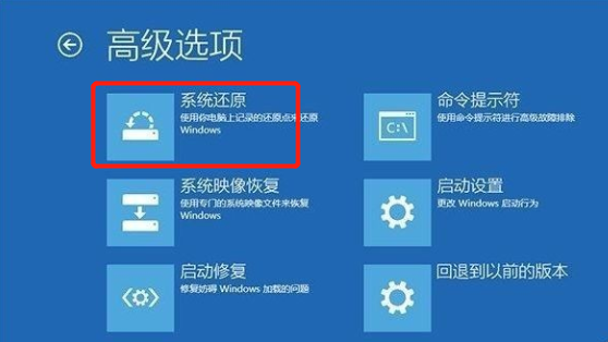 2.選擇【疑難解答】之后,再次點(diǎn)擊【高級選項】,之后選擇【系統還原】,即可對電腦進(jìn)行修復。