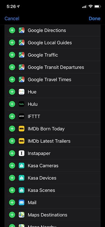 許多iPhone用戶(hù)忘記了他們設備上的小部件頁(yè)面。實(shí)話(huà)實(shí)說(shuō),但是它可能非常有用。要訪(fǎng)問(wèn)它,只需在主屏幕,鎖定屏幕或通知屏幕上向右滑動(dòng)即可。您會(huì )在該頁(yè)面上找到一系列小部件,這些小部件提供快捷方式以及對實(shí)時(shí)信息的零接觸訪(fǎng)問(wèn)。如果您在iPhone上安裝了Google Maps,則可以滾動(dòng)至底部,點(diǎn)擊“編輯”按鈕,然后在可用小部件列表中看到以下內容: